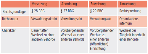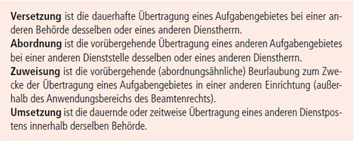 Versetzung, Abordnung, Zuweisung und Umsetzung