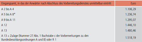 * Anwärter im mittleren Dienst der Berliner Feuerwehr, die nach Abschluss des Vorbereitungsdienstes in das Eingangsamt BesGr. A 7 (Brandmeister) eintreten, erhalten vom Beginn des Kalendermonats an, in dem sie ein Praktikum im Einsatzdienst auf der Feuerwache mit einer durchschnittlichen wöchentlichen Arbeitszeit von über 40 Stunden beginnen, bis zum Schluss des Kalendermonats, in dem dieses endet, einen um 20 Prozent erhöhten Anwärtergrundbetrag.